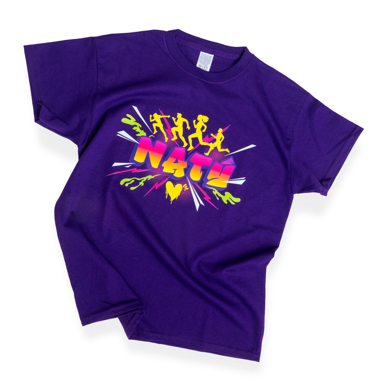 Prát do 30 °C jemnými pracími prostředky bez aviváže, potisk otáčet „naruby“ při praní i žehlení, nepoužívat sušičku.
